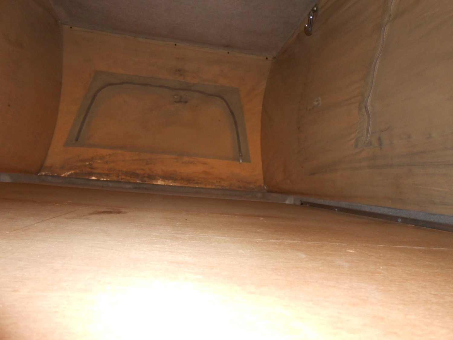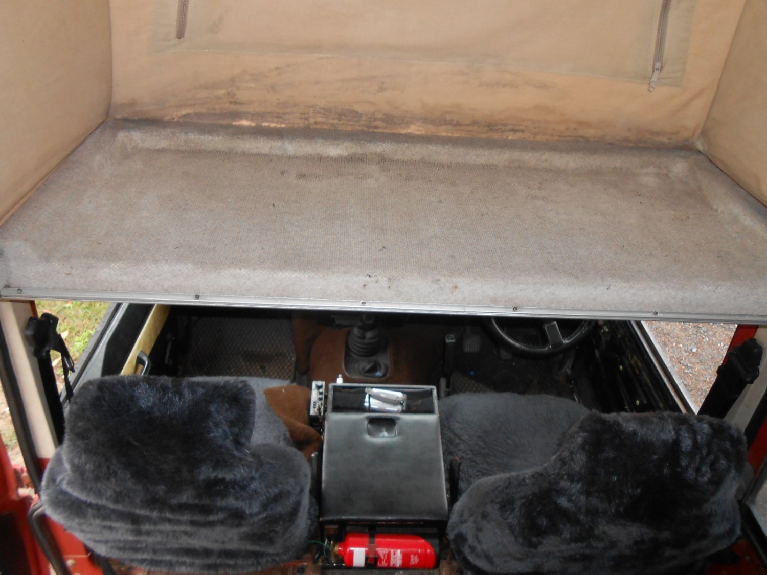 Unfortunately, I don't have any information on the pop top (brand, when it was fitted etc) and have been trying, unsuccessfully, to identify it for the last few years. It is simple to use by undoing four clamps inside and then pushing it up. Everything works okay but the front roof fabric has suffered some mildew damage and leaks at the front in heavy rain. Once up, the split bed platform can be slipped into place. One limitation (of probably many) is that the bedding can't be left in place when it is pulled back down, which is a bit inconvenient, especially if it is raining.