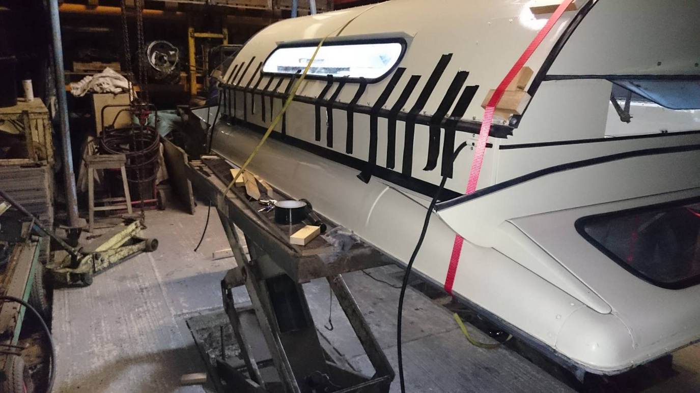 I decided to fit the top hinge last, using the ramps ment it was easy to pull the top down with ratchet straps, I marked the inside of the long ply sides with masking tape so I could see where the top needed to be pulled down to then used carpet tape to pull it all into line (all single handed) I have lowered the roof once (moment of truth) need to make a slight adjustment to get the front right corner to sit flat and have to take it all apart to move the roof back 8mm, live and learn!