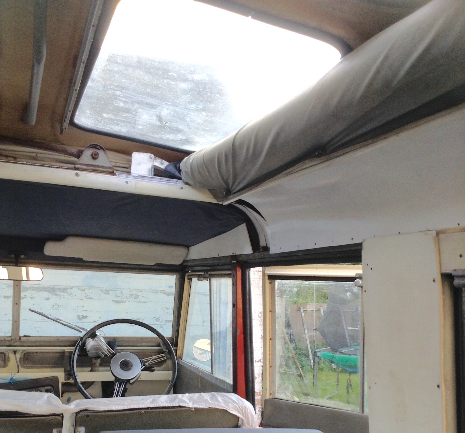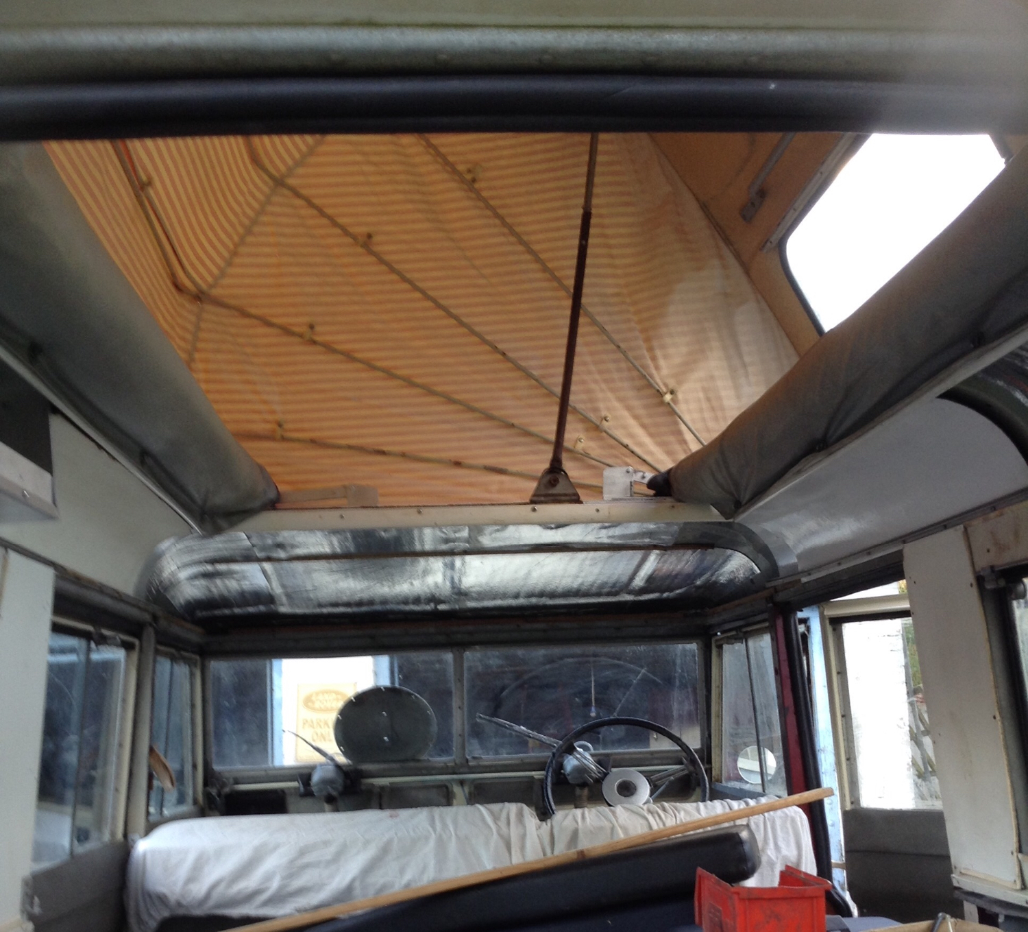 I've used the remains of a 109 safari front roof lining!.. Looking back it would have probably been easier to start fresh!.. It not finished, I've got to make a few white bits, pop to to the front and some curved bits!..