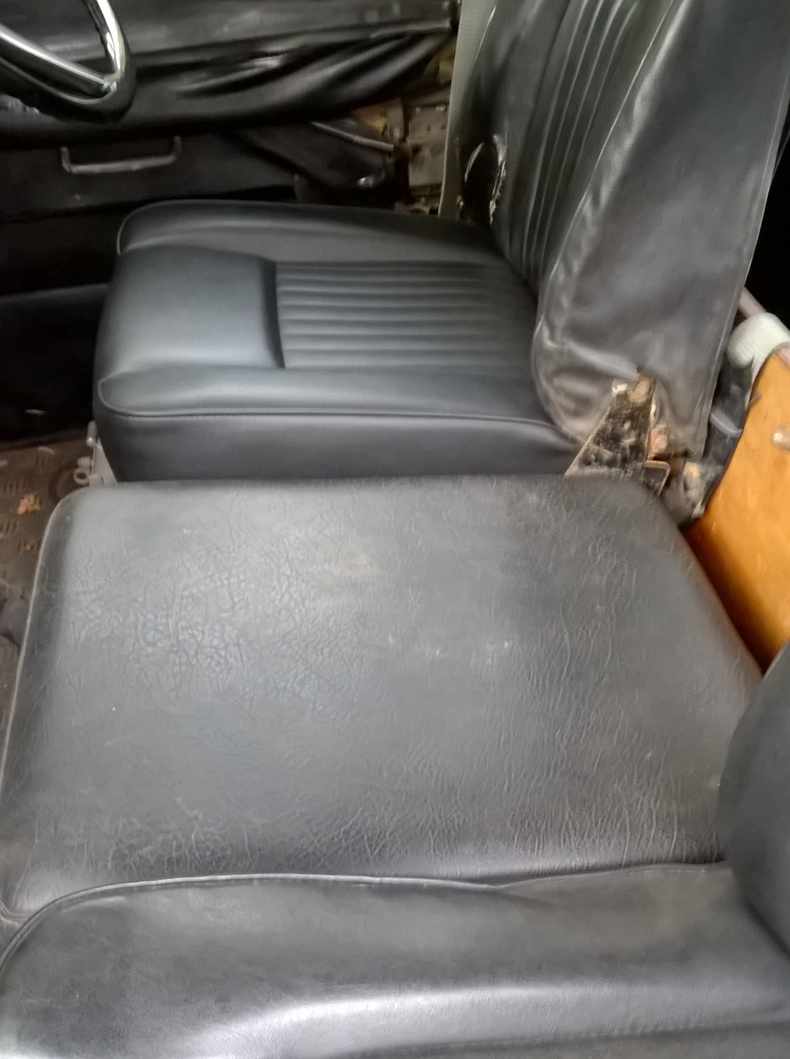 Using photos from old brochures I can get the rear section put together fairly easily and if I fold the back of the driver’s seat down the base cushion from it seems to fit fairly well on top of that; so far so good. The centre section however is another matter – currently the cushion is too low: