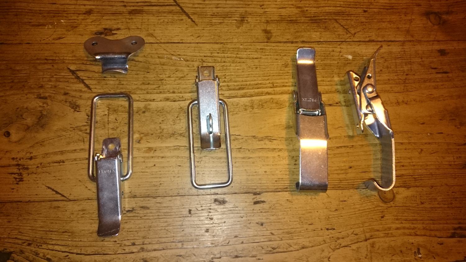 just in case anyone is wondering what to do about roof catches, I found that once I had blasted all the rust and paint off my old catches I found the name Protex stamped on them. I googled and found that they are still available. I managed to work out which ones I needed and ordered a set for my next carawagon roof project. I also needed one more for the back centre of my 1975 carawagon just to pull the roof down and seal it all nicely. A bit of bending and welding needed to adapt the 4 that have the angle welded to them (2 on right hand side) and the top plate (top left hand side) needs bending to fit the curve of the ridge. Really pleased to have found the correct ones, it is also good to know that there are still good quality fasteners available. http://www.protex.com