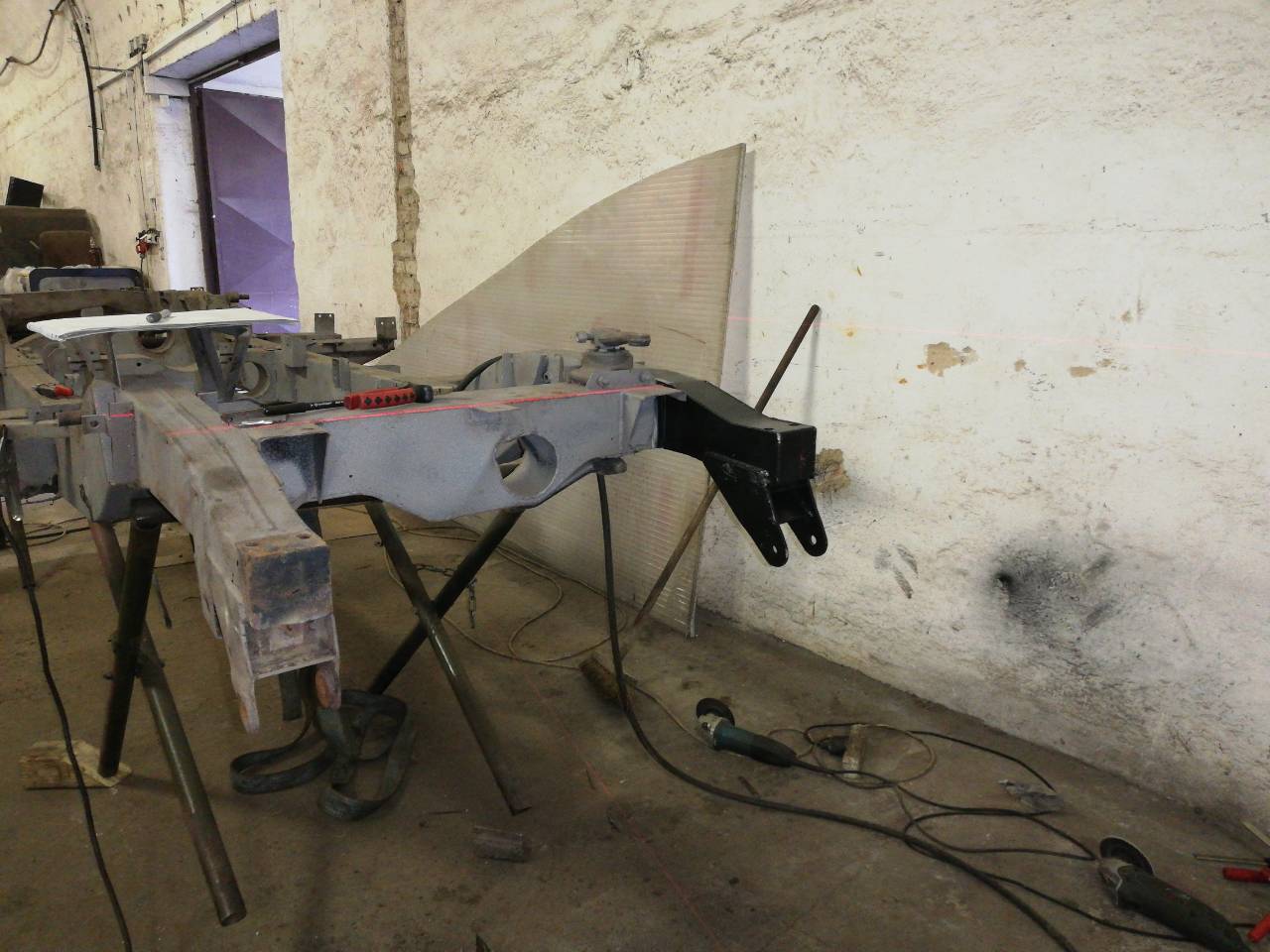 Hey I'm back in business. Laser guides, out riggers front legs all going in with utmost care and presission. Original chassis have about 0.4" twist to it but I take it it's within Land Rover manufacturing tolerances. We will try to adjust it using winch to get it straightened but I think it's already near enough.