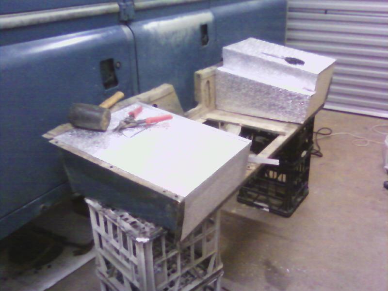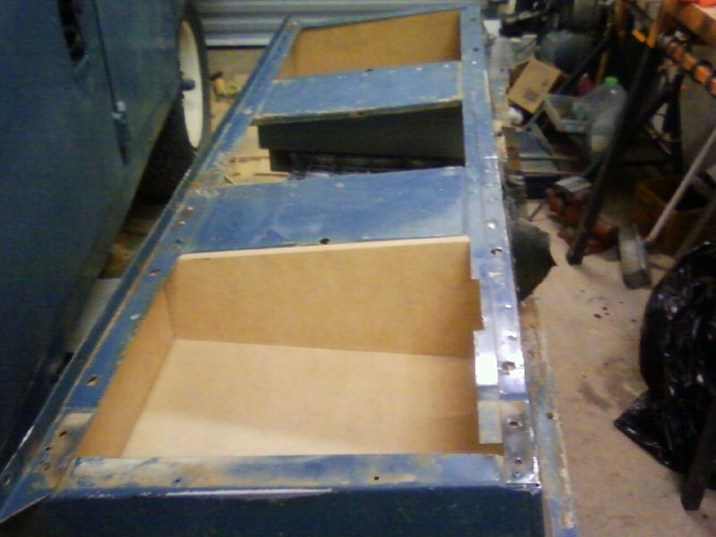 I've made the new boxes out of mdf and have cut and glued aluminium sheet to the exterior faces. The insides will be covered in carpet. I've also made a new top with lids for the seat box, again out of mdf which will be carpeted. This does raise the driving position slightly but I find it better as I'm only little