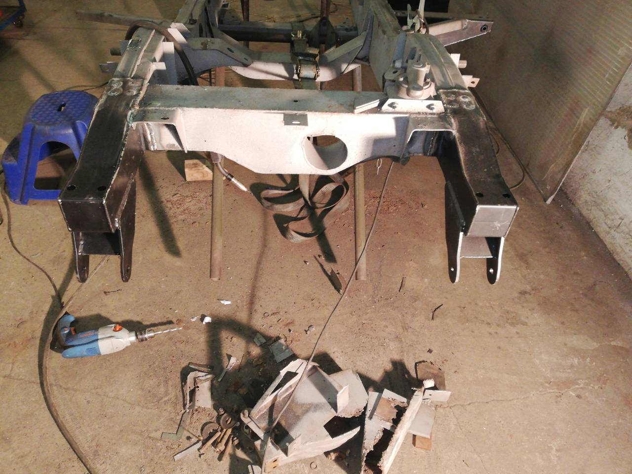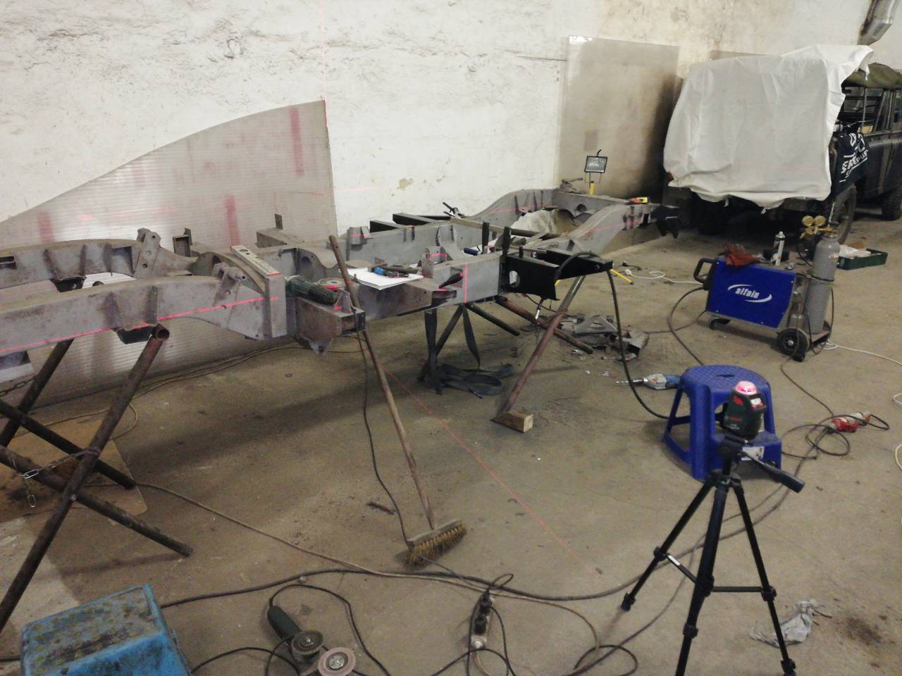 Hey I'm back in business. Laser guides, out riggers front legs all going in with utmost care and presission. Original chassis have about 0.4" twist to it but I take it it's within Land Rover manufacturing tolerances. We will try to adjust it using winch to get it straightened but I think it's already near enough.
