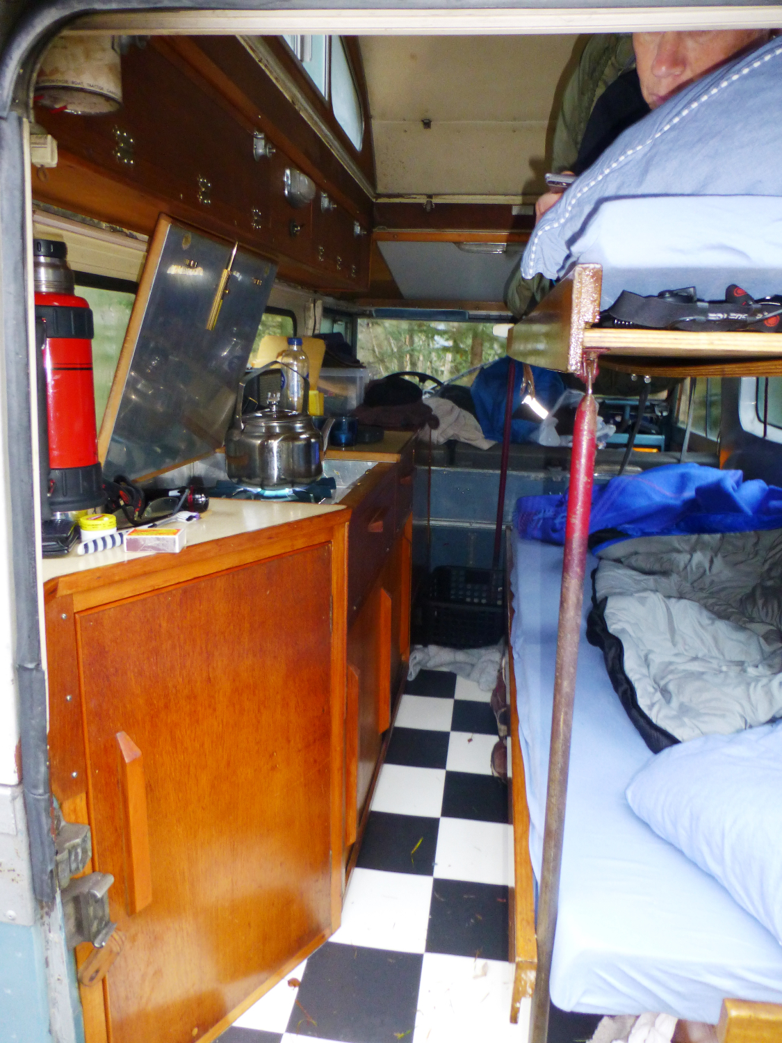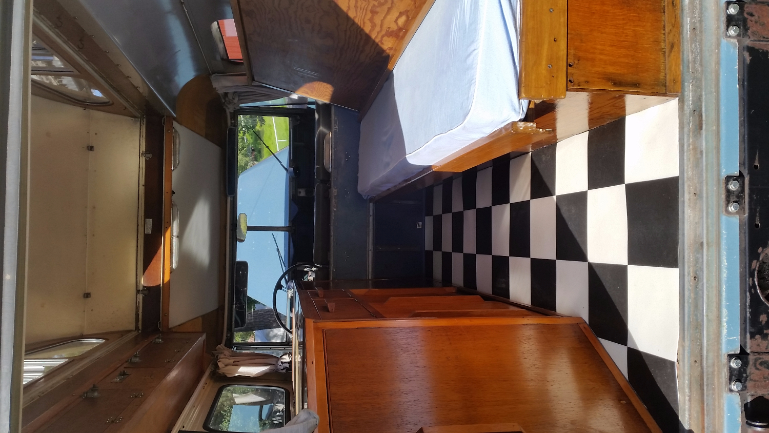 New flooring and a mattress on the lower bed. The upper is working as a back on daytime and when driving.