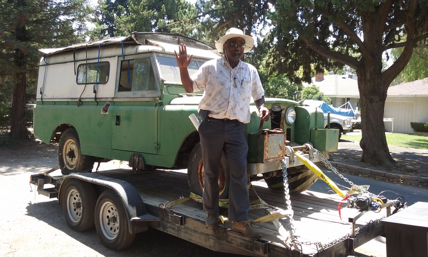 This is Richard from California. I have got my hands on what I found out is a 1967 109" Carawagon. It had been sitting for some time but the California climate is kind to old cars. It has a 2.25L diesel and it is not that common in the states so has been a bit of a hunt for some of the parts. The engine had some odd parts on it as you can see in the pics. I found out the exhaust and oil pan were from a marine version of the 2.25L. It is like a big puzzle. Started in on it with all mechanical systems to get it running. So far so good. I could rebuild most of what I found. Done with the Brakes,Clutch,Cooling system, fuel system, working on the electrical and seats now. Removing 50 yrs of experimental wiring from past owners. everything in the back had been removed and as I look around it seams like each truck was unique so I am free to build it back as I wish. My next job will be the pop-up roof. I have the seals on order and will fabricate new wood sections. I do have questions for anyone that have done this before. Any tips would be appreciated but I'm most interested in how to safely remove the old rivets and piano hinge with out damaging the aluminum roof panel. Enjoy the pics! FYI the guy in the photo is the old owner not me!